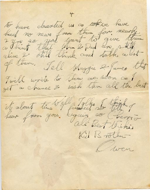 Tell Maggie & James that I will write to them soon as I get a chance & wish them all the best