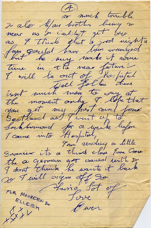 Well folks there isn’t much more to say at the moment only I hope that you get my post card from Scotland as I went up to Locklomond for a week before I came into the Hospital.