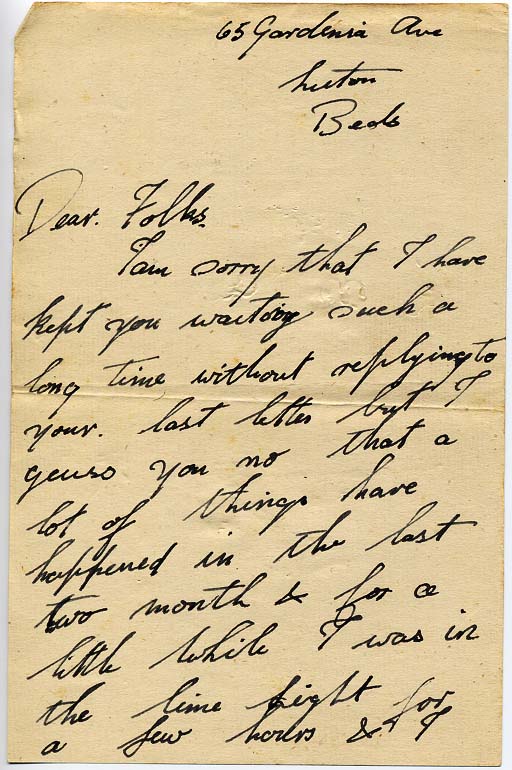 I am sorry that I have kept you waiting such a long time without replying to your last letter but I guess you no that a lot of things have happened in the last two month & for a little while I was in the lime light for a few hours & I