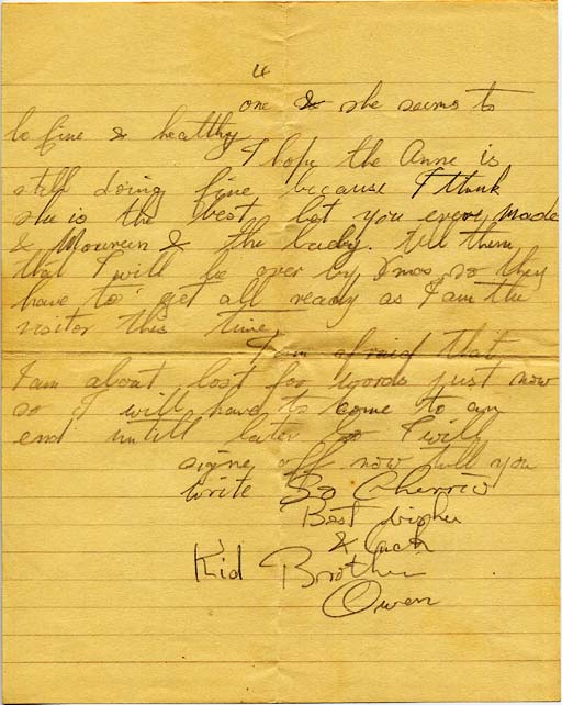 I hope the Anne is still doing fine because I think she is the best bet you ever made & Maureen & the baby tell them that I will be over by Xmas so they have to get all ready as I am the visitor this time.